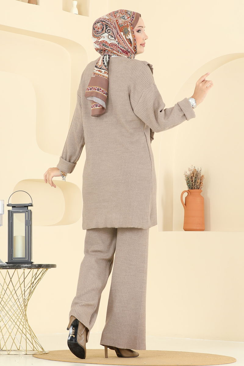 Embrace the season's essential with the Ruffle Detailed Knit Suit , offering elegance and comfort in modest wear. This suit ensures you stay warm during autumn and winter and offers durability with its gentle wash feature. Its bicycle neckline and button-front design provide both style and practicality, while the elastic waistband on the pants enhances your comfort. Suitable for standard sizes, this set will elevate your style.