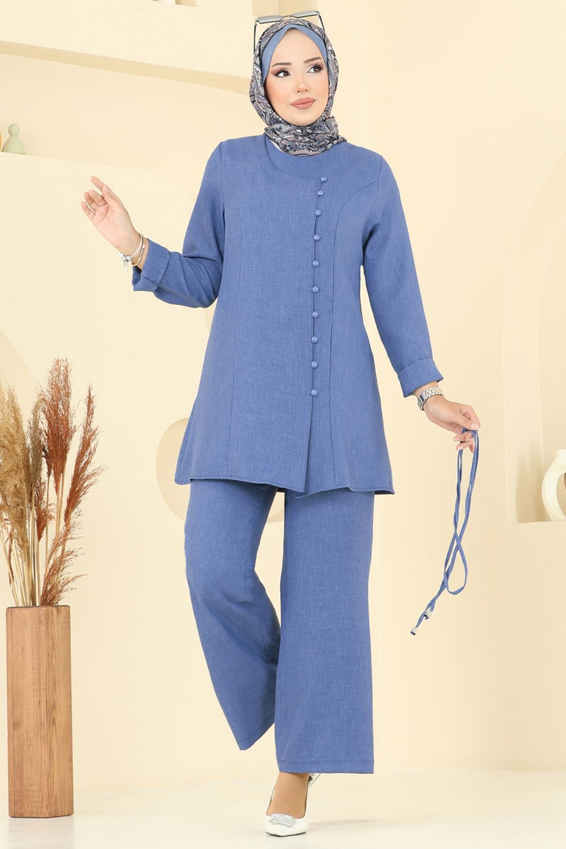 Product Feature : It is a new season hijab fashion product. It has a button that can be used from the back. The product has a Cycling collar. The product has From the front buttons. Unlined. Lacing is included, optional not available. The waist of the trousers is elastic. There may be a tonal difference in the product due to concept photo shoots.