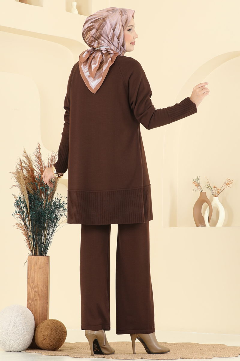 Smart and stylish, the Buttoned Knitwear Set with Accessories is designed to warm your autumn and winter. Offering ease of washing at 30 degrees with a delicate wash feature, this hijab-friendly product combines comfort and elegance. Made from knit fabric, the set consists of a bicycle neck tunic and an elastic waist pants. Complete your style with buttons added as accessories.