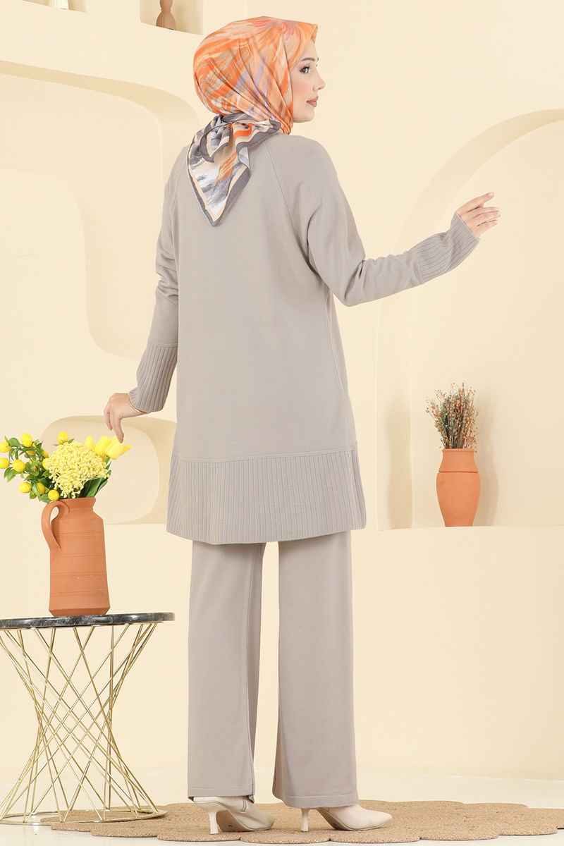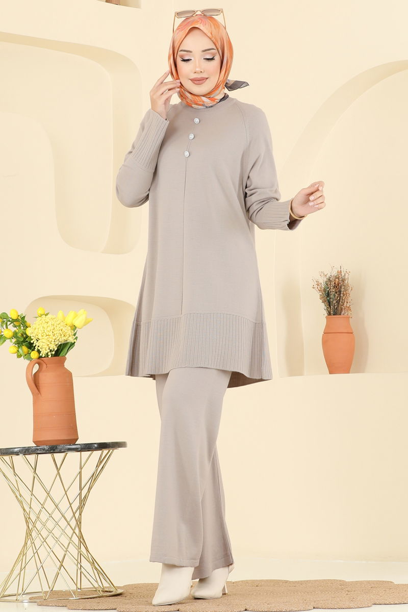 Smart and stylish, the Buttoned Knitwear Set with Accessories is designed to warm your autumn and winter. Offering ease of washing at 30 degrees with a delicate wash feature, this hijab-friendly product combines comfort and elegance. Made from knit fabric, the set consists of a bicycle neck tunic and an elastic waist pants. Complete your style with buttons added as accessories.