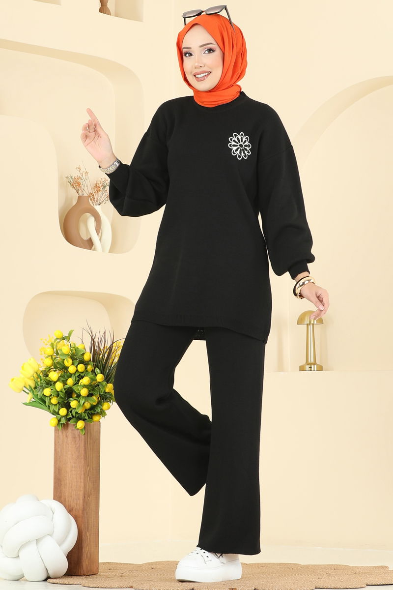 Perfect for refreshing your winter wardrobe, this Floral Detailed Knit Set will keep you warm and stylish during the autumn and winter seasons. Designed for gentle care, this set can be washed at 30 degrees and is made from knit fabric. With a crew neck and an unlined design, it offers ease of wear, available in standard sizes, comprising a tunic and pants. The elastic waist on the pants ensures your comfort, while the sewn floral details complete your elegance.