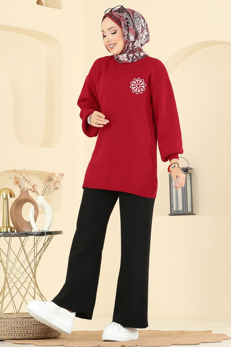 Perfect for refreshing your winter wardrobe, this Floral Detailed Knit Set will keep you warm and stylish during the autumn and winter seasons. Designed for gentle care, this set can be washed at 30 degrees and is made from knit fabric. With a crew neck and an unlined design, it offers ease of wear, available in standard sizes, comprising a tunic and pants. The elastic waist on the pants ensures your comfort, while the sewn floral details complete your elegance.