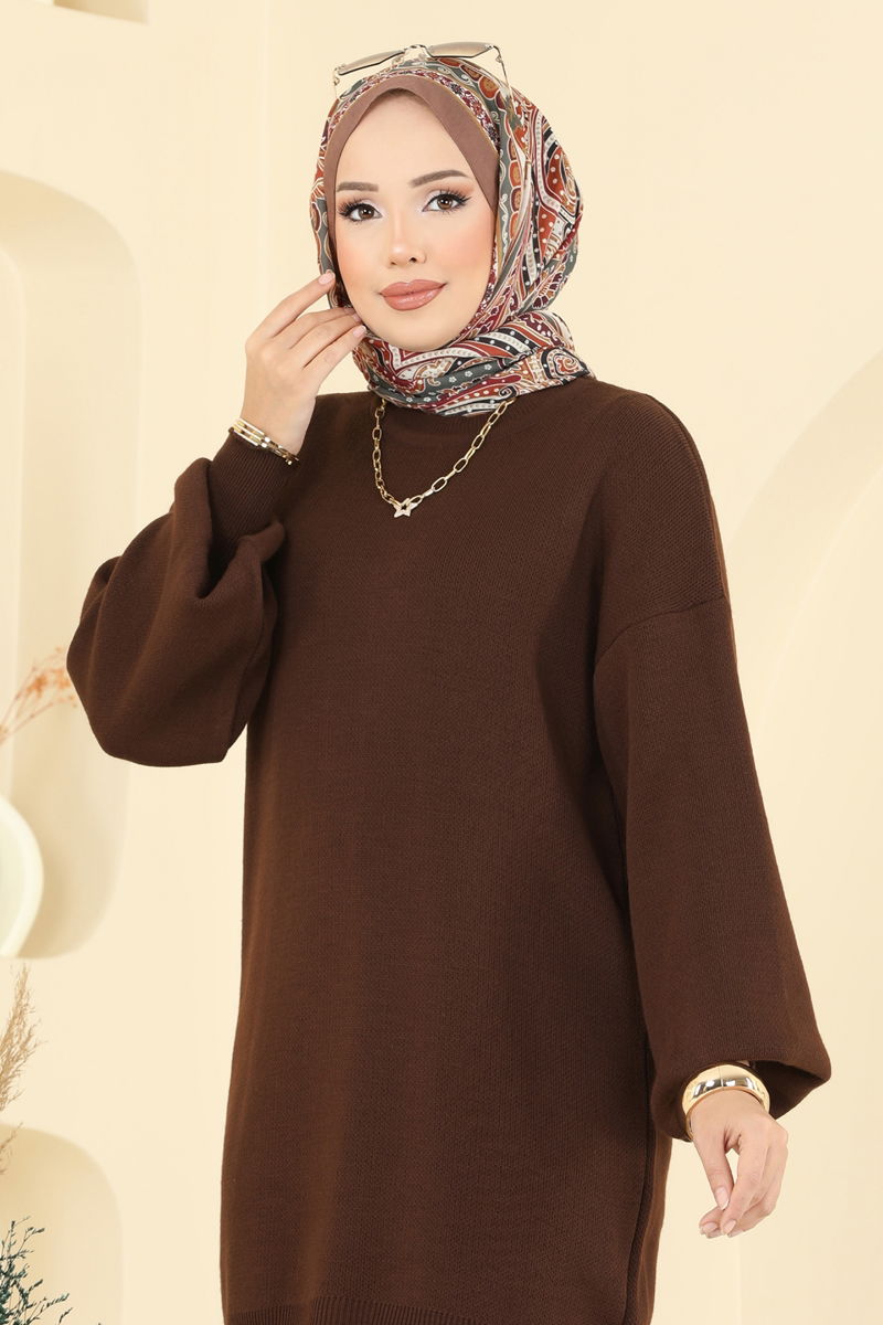 Our Skirted Knitwear Set KOMBIN model is a special product suitable for your conservative clothing style, which can be comfortably used during autumn and winter seasons. It is made from high-quality knit fabric, ensuring a long life span. It can be washed at 30 degrees with delicate care. The model features a bicycle neck design and is without lining. The skirt has an elastic waist design, offering a comfortable fit. The product is displayed on the model in a standard size.