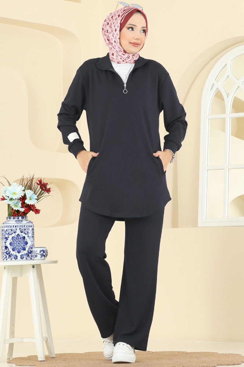 The Half-Zip Modal Suit, with its modern and elegant appearance, can be comfortably worn in all seasons, leading the way in modest fashion. This set is made from high-quality modal fabric, resistant to fading and deformation. The half-zip at the front adds both style and functionality, while the elastic waistband on the pants enhances your comfort. The tunic features pockets for added convenience. Washable at 30 degrees on a gentle cycle, this product is ideal for long-term use.