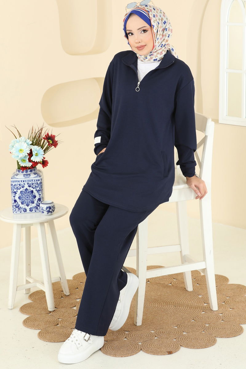 The Half-Zip Modal Suit, with its modern and elegant appearance, can be comfortably worn in all seasons, leading the way in modest fashion. This set is made from high-quality modal fabric, resistant to fading and deformation. The half-zip at the front adds both style and functionality, while the elastic waistband on the pants enhances your comfort. The tunic features pockets for added convenience. Washable at 30 degrees on a gentle cycle, this product is ideal for long-term use.