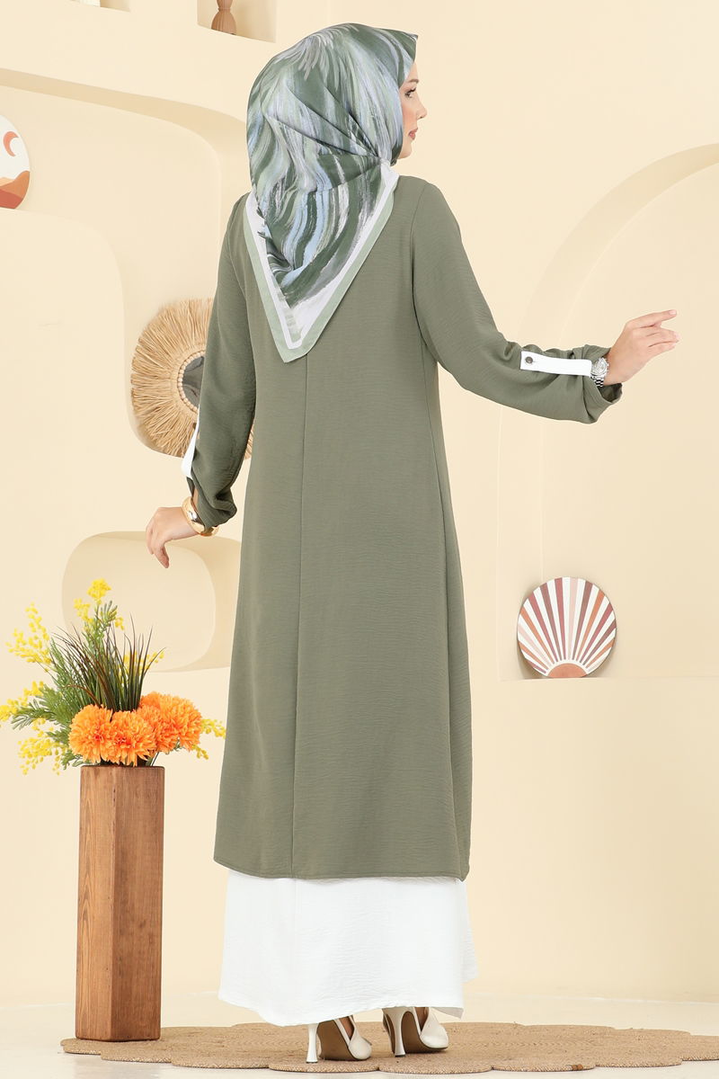 Product Feature : It is a new season hijab fashion product. The product is worn on the head. The product has a Cycling collar. The tunic has a front slash.. Unlined. The inner dress is sleeveless. The cuff epaulette buttons are functional. There may be a tonal difference in the product due to concept photo shoots.