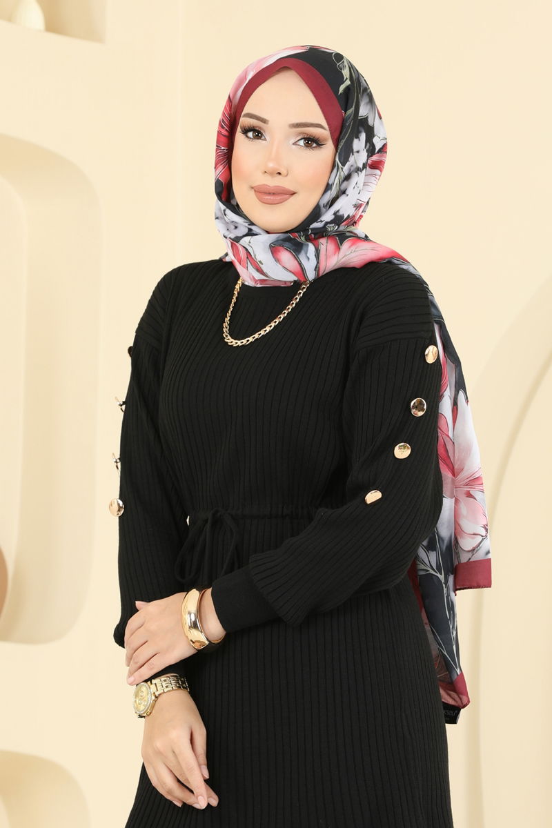 The Drawstring Waist Knit Suit, with its KOMBIN model, introduces a new style in modest fashion. Ideal for autumn and winter, this product offers ease of use with its gentle wash at 30 degrees option. The knit fabric keeps you warm while the crew neck marries elegance with comfort. The drawstring waist design and elastic pant waist provide a perfect fit. Offered as a set with a tunic and pants, this product caters to a broad audience with sizes ranging from 36-38-40-42.