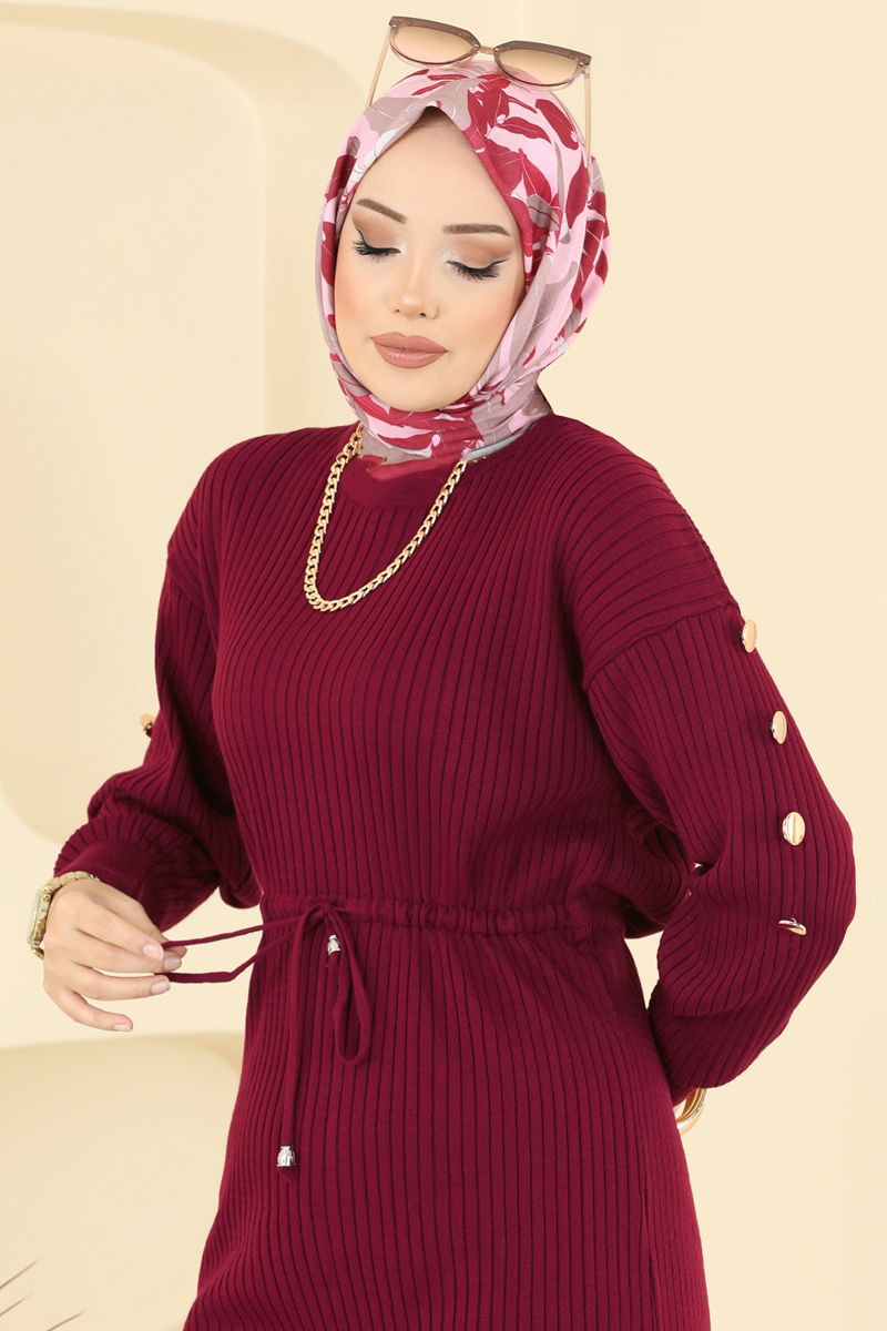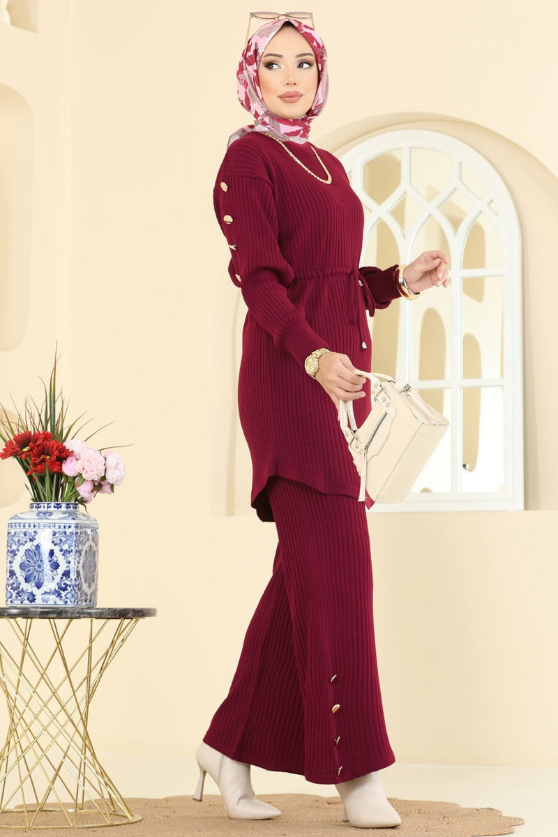 The Drawstring Waist Knit Suit, with its KOMBIN model, introduces a new style in modest fashion. Ideal for autumn and winter, this product offers ease of use with its gentle wash at 30 degrees option. The knit fabric keeps you warm while the crew neck marries elegance with comfort. The drawstring waist design and elastic pant waist provide a perfect fit. Offered as a set with a tunic and pants, this product caters to a broad audience with sizes ranging from 36-38-40-42.