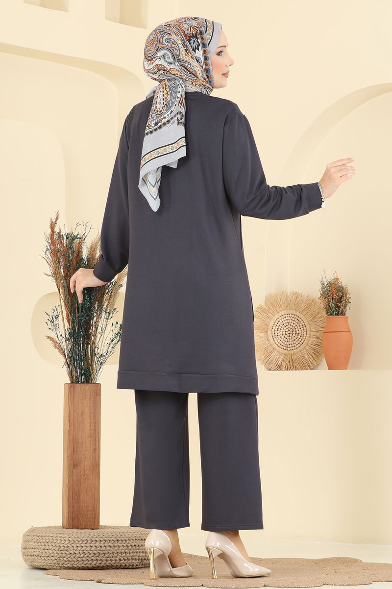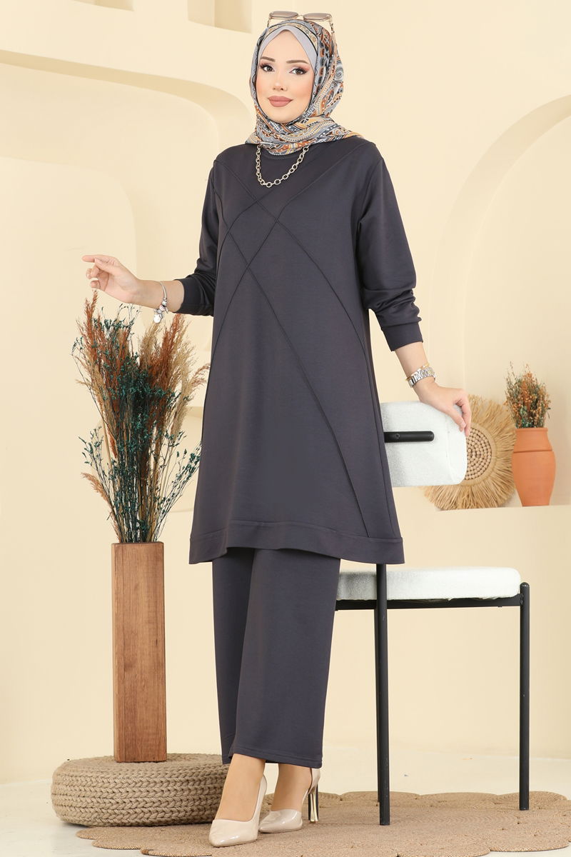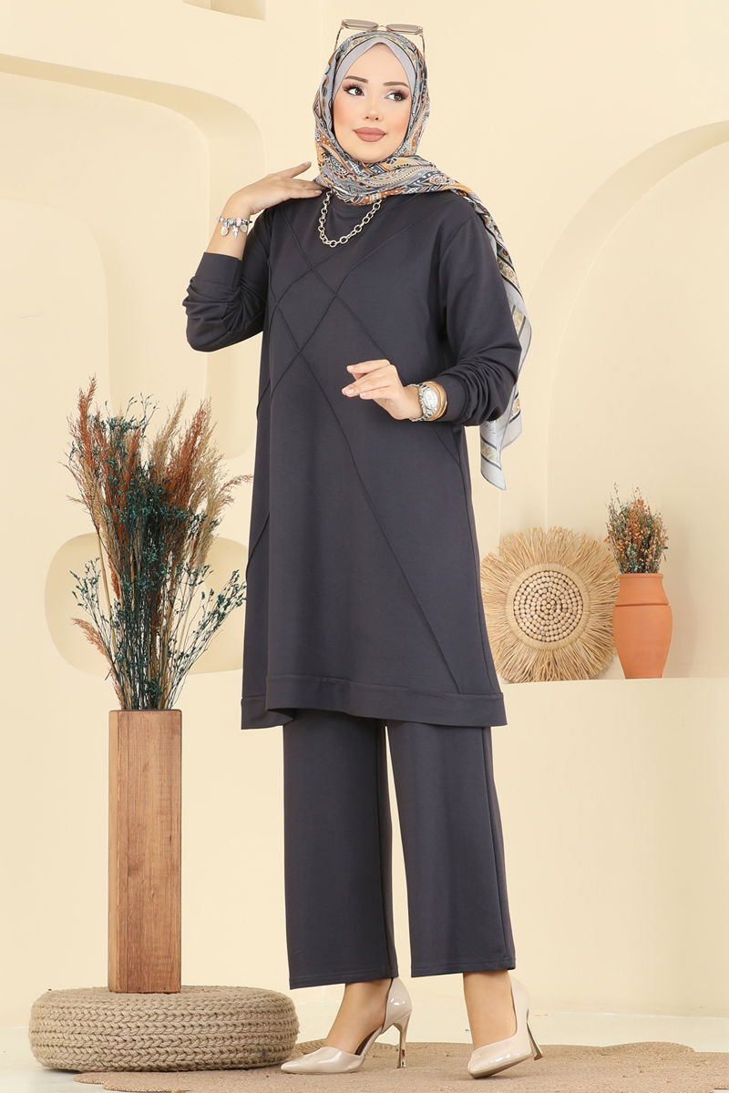 The Crew Neck Crystal Suit COMBINATION is a model that can be comfortably used in all seasons. Made from crystal fabric, this hijab suit offers elegance and comfort together. Its crew neck provides a sophisticated look, while its unlined structure ensures it is light and comfortable. The elastic waistband of the pants offers maximum comfort. This combination of tunic and pants is a modern and stylish option.