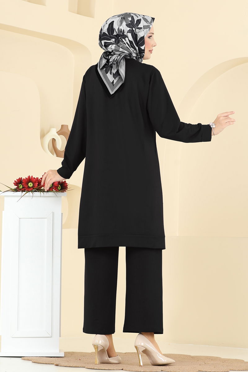 The Crew Neck Crystal Suit COMBINATION is a model that can be comfortably used in all seasons. Made from crystal fabric, this hijab suit offers elegance and comfort together. Its crew neck provides a sophisticated look, while its unlined structure ensures it is light and comfortable. The elastic waistband of the pants offers maximum comfort. This combination of tunic and pants is a modern and stylish option.