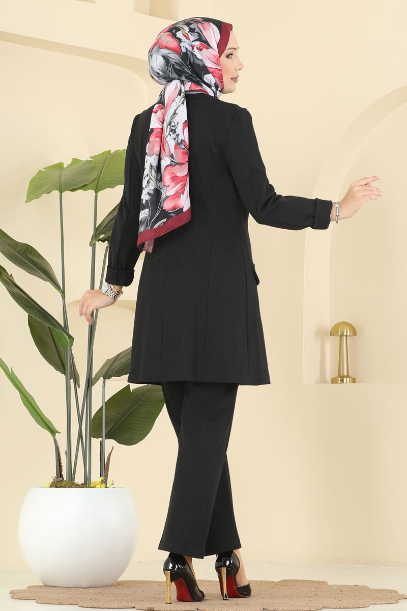 Product Feature : It is a new season hijab fashion product. There is a button available from the front. The product has a Double-breasted collar. Unlined. Brooch is not included in the product. Pocket detail is an accessory. The waist of the trousers is elastic. There may be a tonal difference in the product due to concept photo shoots.