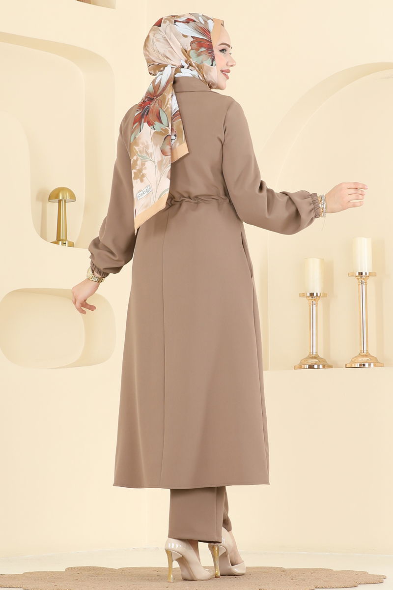Sophisticated and modern, the Buttoned Dabıl Set is a hijab style suitable for all seasons. This set is easy to care for, washable at 30 degrees, and made from woven Dabıl fabric. It features a shirt collar and front button design for practical use. It is unlined, with a tie at the waist and an elastic waist on the pants. It offers functionality with pockets in both the tunic and pants, and elastic cuffs.