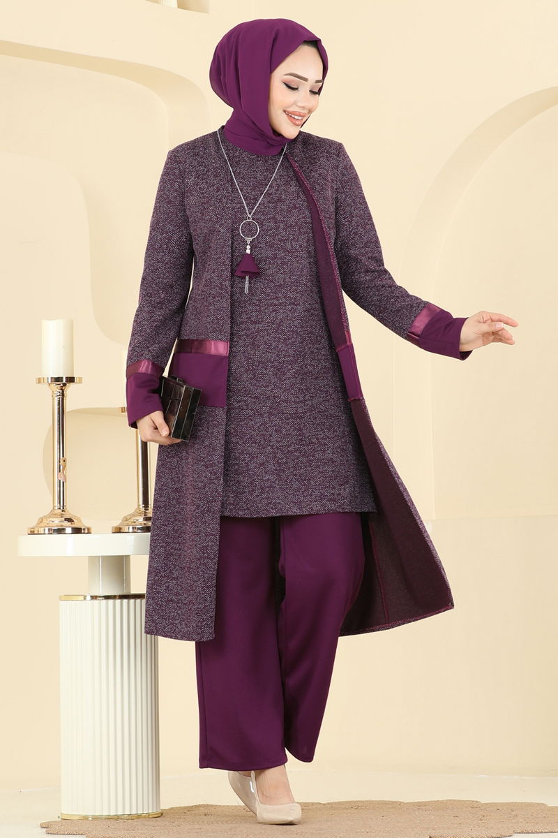 Product Feature : It is a new season hijab fashion product. The product has a Cycling collar. It's unlined. It's see-through.. Accessory included, optional not available. Cardigan is sewn to the product. The waist of the trousers is elastic. There may be a tonal difference in the product due to concept photo shoots.