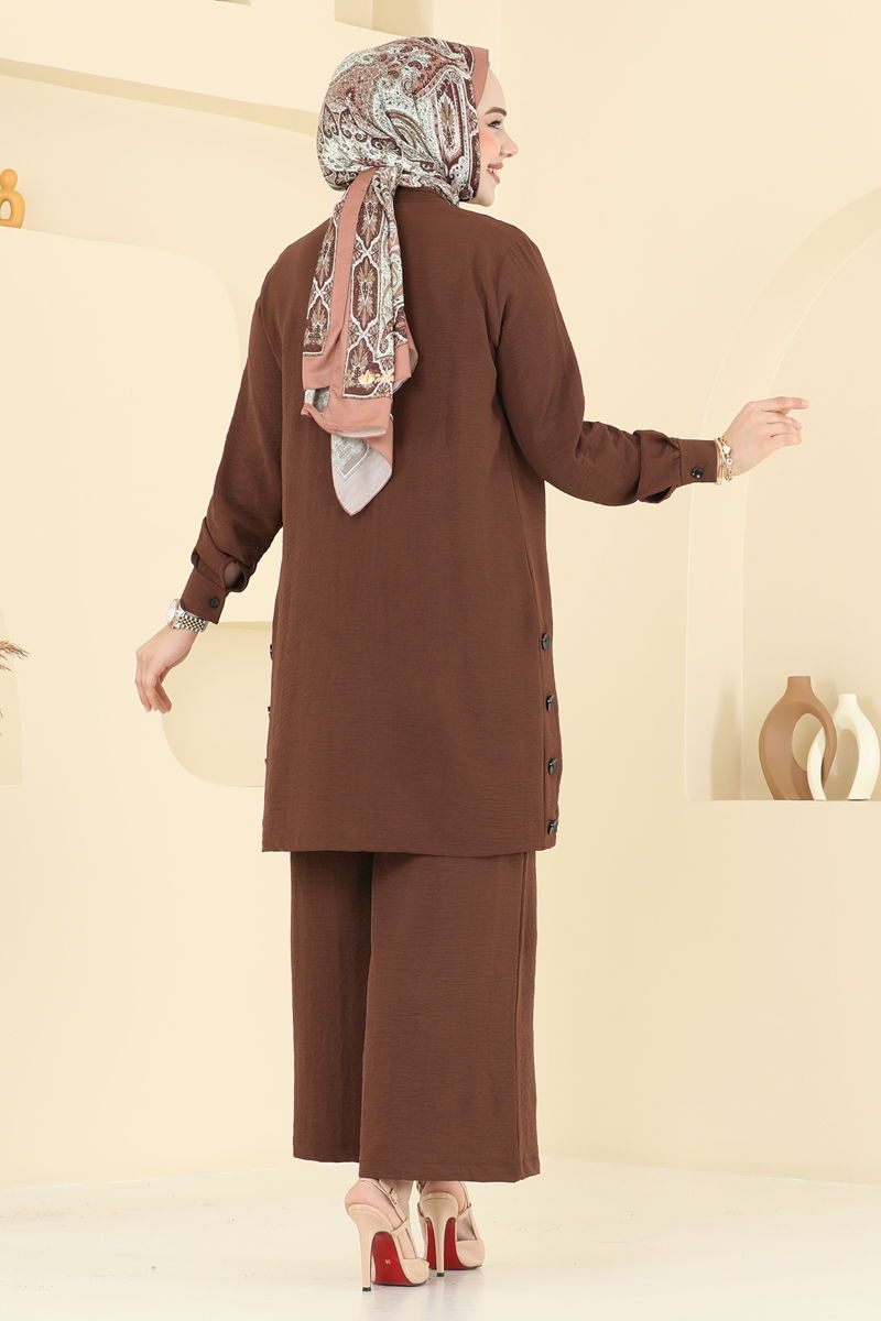Product Feature : It is a new season hijab fashion product. The product has a Half Judge collar. The product has Secret buttons. Slach buttons are an accessory.. Unlined. Accessories are not included. Blouse is not included. Sample combination is made with the blouse to show the intended use of the product. The waist of the trousers is elastic. Cuff buttons are active. There may be a tonal difference in the product due to concept photo shoots.