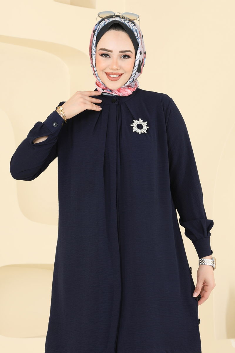 Product Feature : It is a new season hijab fashion product. The product has a Half Judge collar. The product has Secret buttons. Slach buttons are an accessory.. Unlined. Accessories are not included. Blouse is not included. Sample combination is made with the blouse to show the intended use of the product. The waist of the trousers is elastic. Cuff buttons are active. There may be a tonal difference in the product due to concept photo shoots.