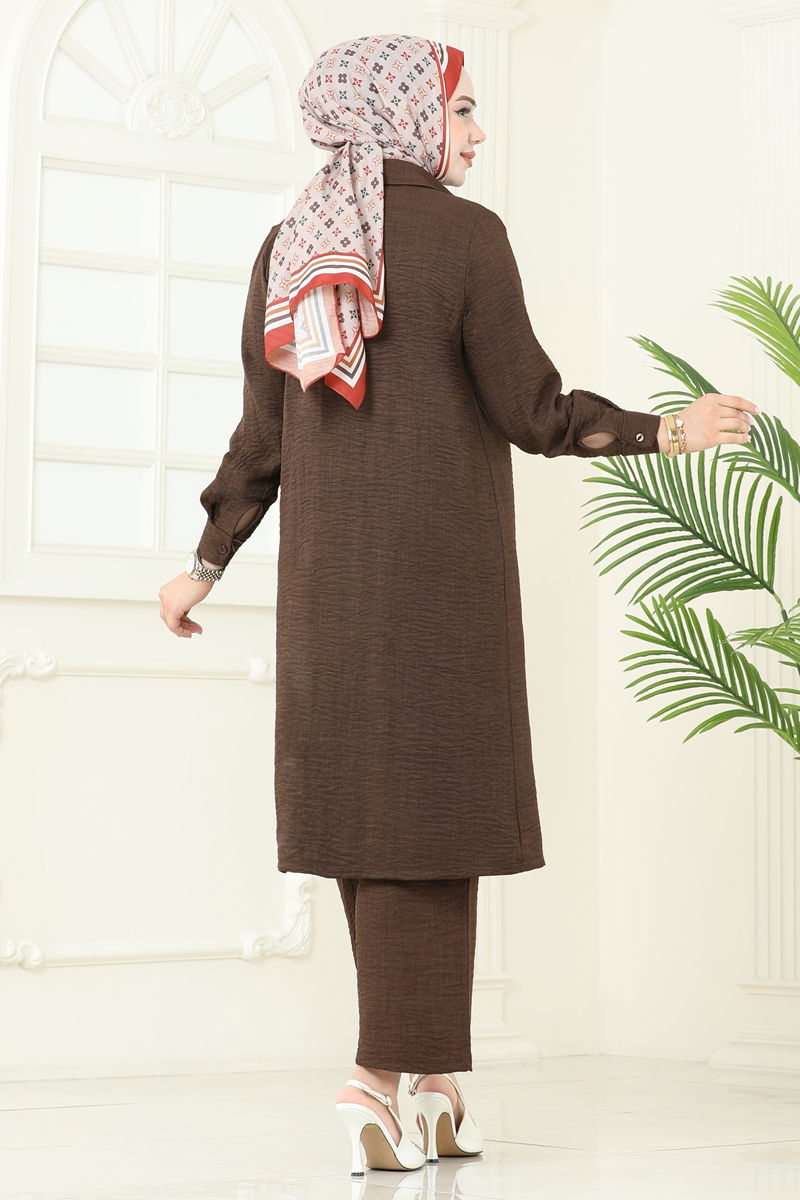 Product Feature : It is a new season hijab fashion product. The product has a Shirt collar. The product has Secret buttons. Unlined. The stones are glued. The waist of the trousers is elastic. Cuff buttons are active. There may be a tonal difference in the product due to concept photo shoots.