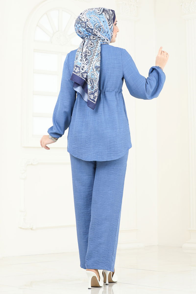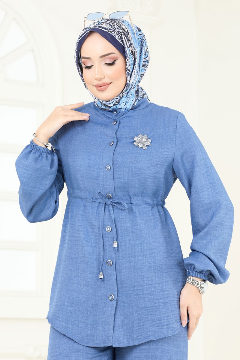 Product Feature : It is a new season hijab fashion product. It has a laced waist. The product has a Half Judge collar. The product has From the front buttons. Unlined. Accessories are not included. Blouse is not included. Sample combination is made with the blouse to show the intended use of the product. The waist of the trousers is elastic. The cuff is rubberized. There may be a tonal difference in the product due to concept photo shoots.