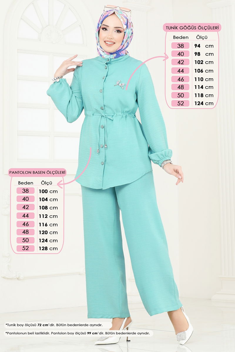 Product Feature : It is a new season hijab fashion product. It has a laced waist. The product has a Half Judge collar. The product has From the front buttons. Unlined. Accessories are not included. Blouse is not included. Sample combination is made with the blouse to show the intended use of the product. The waist of the trousers is elastic. The cuff is rubberized. There may be a tonal difference in the product due to concept photo shoots.