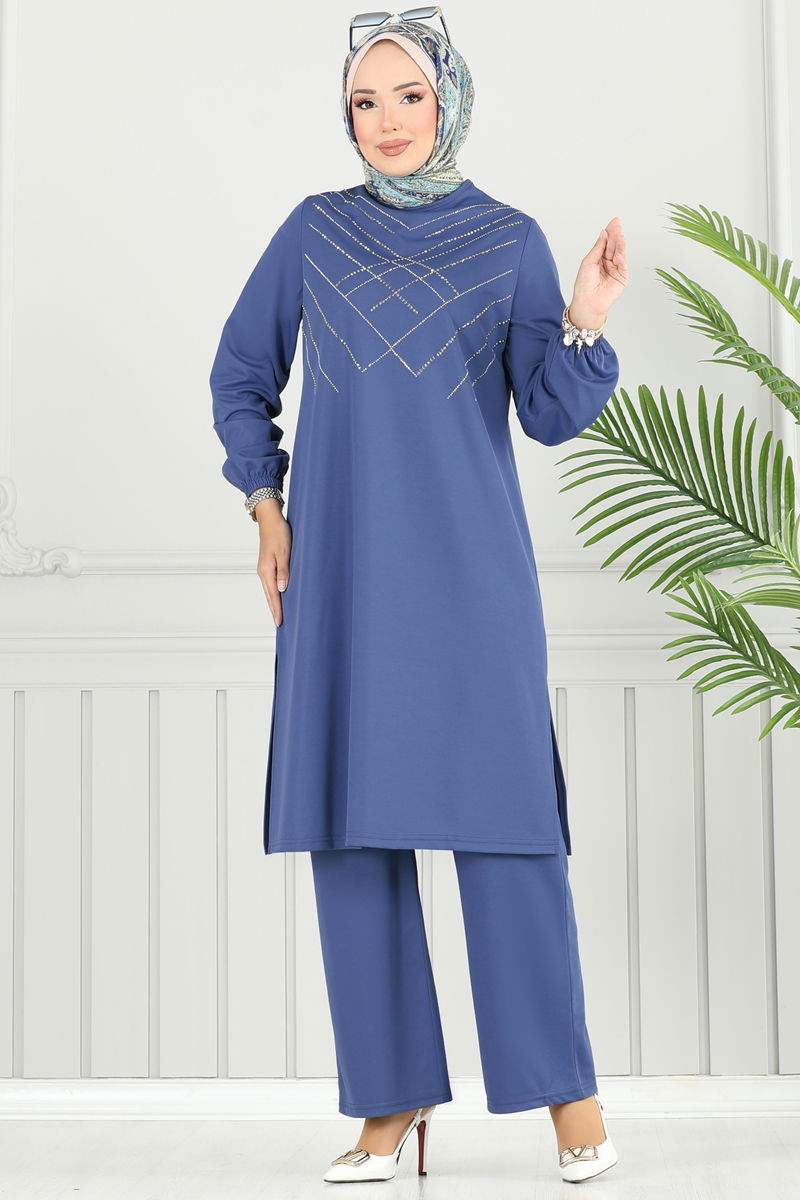 Product Feature : It is a new season hijab fashion product. The product has a Cycling collar. The tunic has a side slash.. Unlined. The stones are glued. The waist of the trousers is elastic. The cuff is rubberized. There may be a tonal difference in the product due to concept photo shoots.