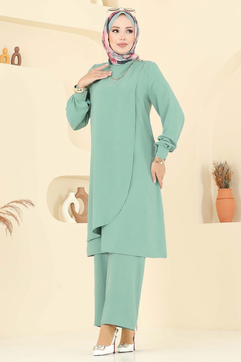 Product Feature : It is a new season hijab fashion product. It has a button that can be used from the back. The product has a Cycling collar. Unlined. Buttons are accessories. The waist of the trousers is elastic. Cuff buttons are active. There may be a tonal difference in the product due to concept photo shoots.