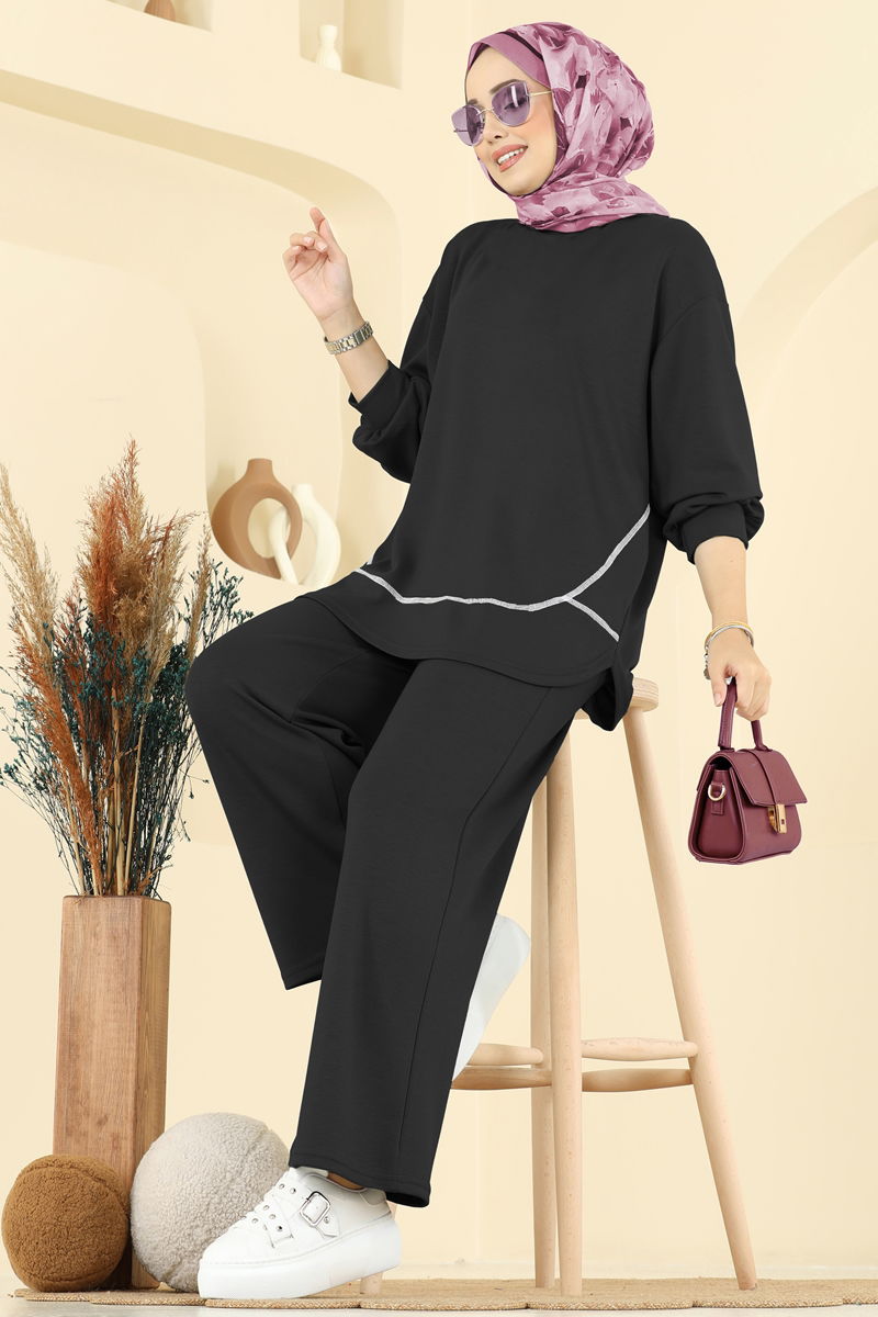Product Feature : It is a new season hijab fashion product. The product has a Cycling collar. Details are sewn. The product has a pocket. The waist of the trousers is elastic. There may be a tonal difference in the product due to concept photo shoots.