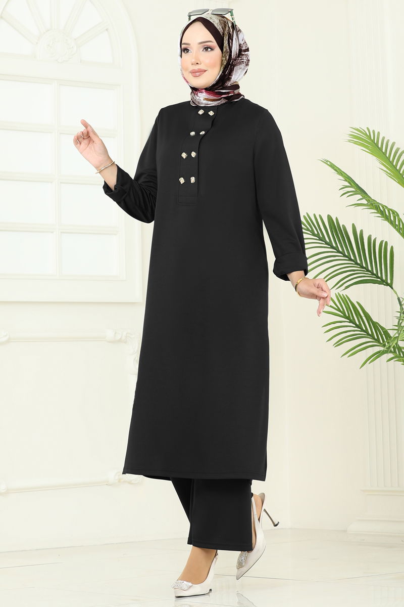 Product Feature : It is a new season hijab fashion product. The product has a Cycling collar. The tunic has a side slash.. Unlined. Buttons are accessories. The waist of the trousers is elastic. There may be a tonal difference in the product due to concept photo shoots.