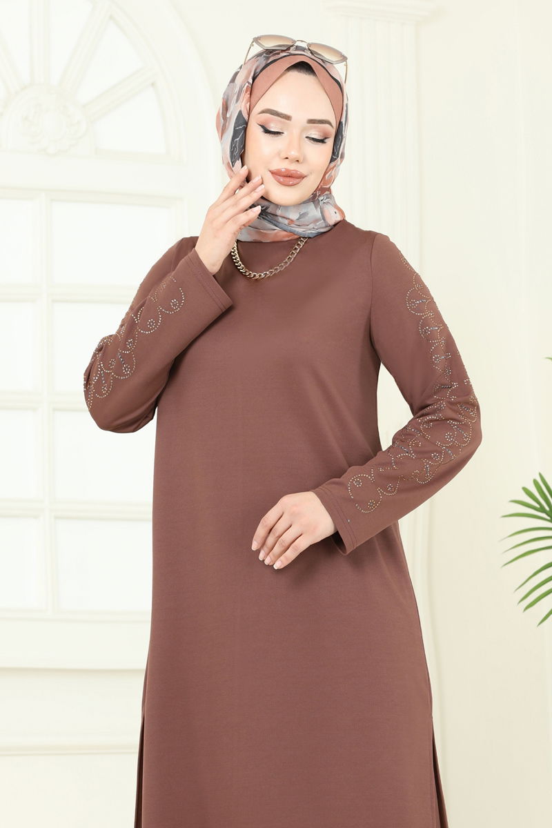 Featuring elegance and comfort together, the Stone Detailed Hijab Suit is designed for use in all seasons. It offers a long-lasting use with a recommendation of delicate wash at 30 degrees. Its Mira fabric provides comfort all day long. The suit perfectly combines a bike neck, side-slit tunic and elastic waist trousers. The stone details add a striking look, while its unlined structure guarantees lightness. The combination preserves your elegance throughout the seasons with its exquisite details.