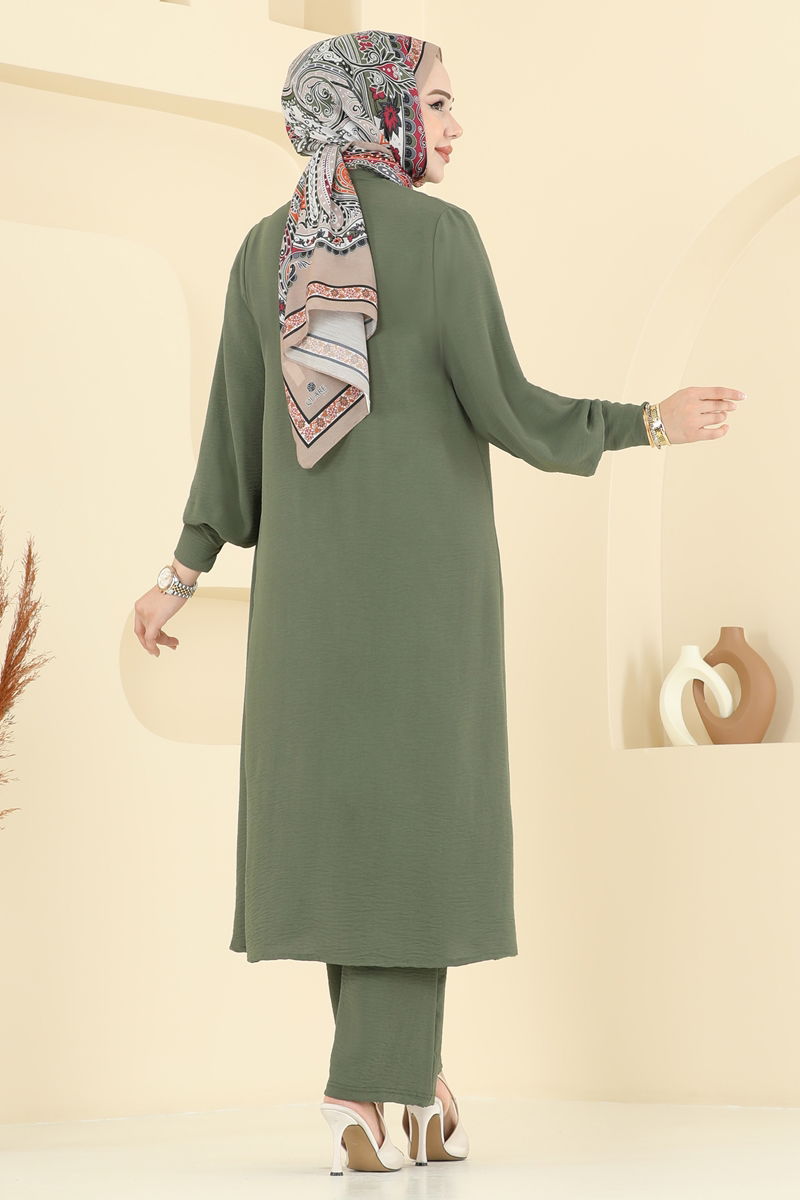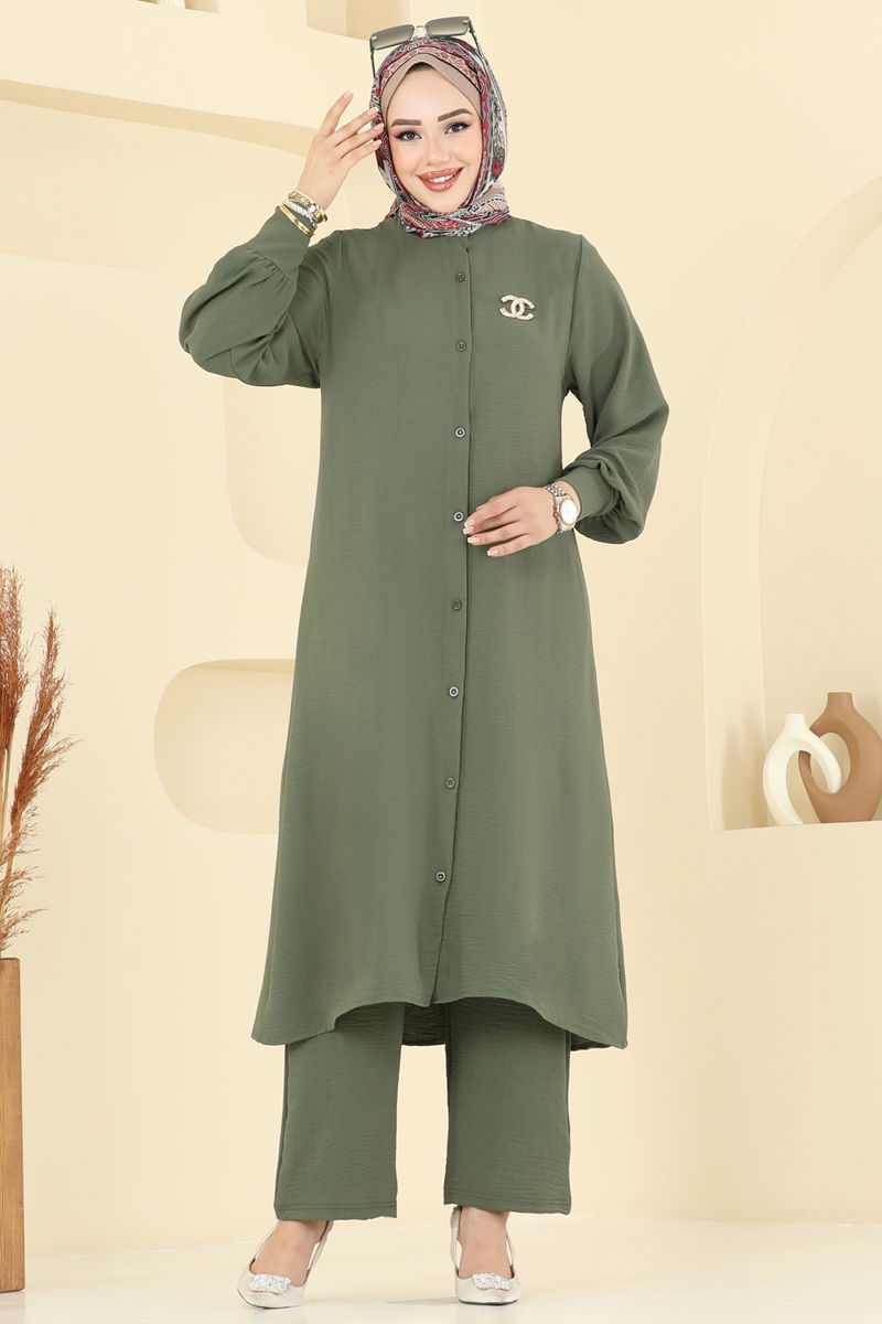 Product Feature : It is a new season hijab fashion product. The product has a Shirt collar. The product has From the front buttons. Unlined. The inner blouse is sleeveless. The waist of the trousers is elastic. There may be a tonal difference in the product due to concept photo shoots.