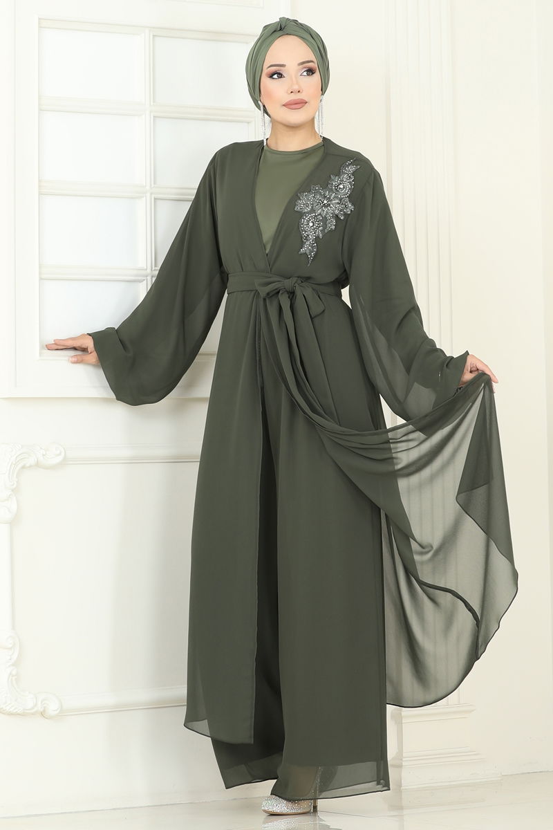 Product Feature : It is a new season hijab fashion product. It is lined. The gown is sewn and the stones are printed. Blouse is not included. Sample combination is made with the blouse to show the intended use of the product. The waist of the trousers is elastic. The cuff is rubberized. There may be a tonal difference in the product due to concept photo shoots.