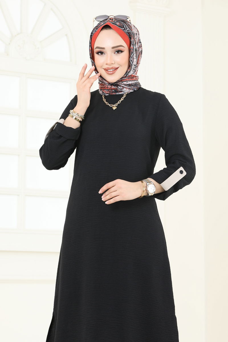 Offering both elegance and comfort, the Cuffed Button Aerobin Suit is a modest wear that can be comfortably worn in all seasons. It can be cleaned with a gentle wash at 30 degrees. Made from aerobin fabric, this set consists of a bicycle neck tunic and cuffed button trousers. The tunic is side-slit and unlined while the trousers have an elastic waist for comfortable wear. Suitable for both everyday use and special occasions, this suit adds a stylish look with its active cuff buttons.