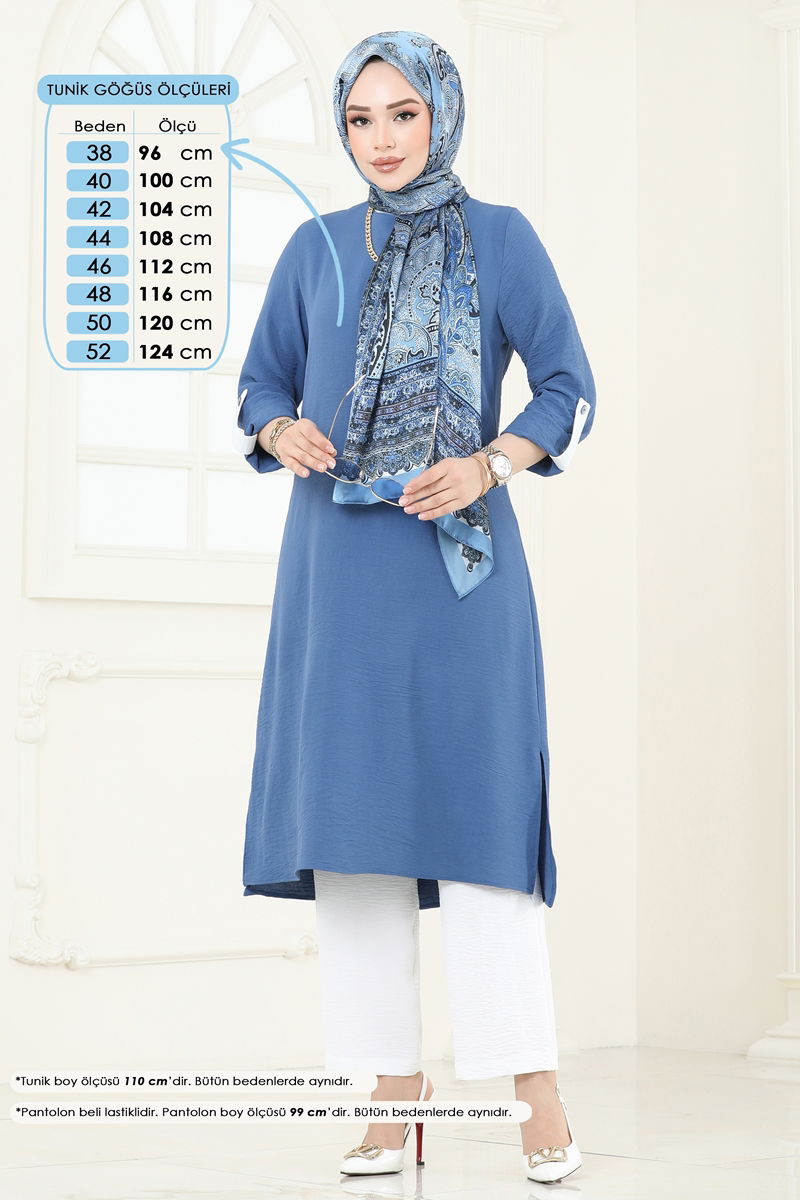Product Feature : It is a new season hijab fashion product. It has a button that can be used from the back. The product has a Cycling collar. The tunic has a side slash.. Unlined. Accessories are not included. The waist of the trousers is elastic. Cuff buttons are active. There may be a tonal difference in the product due to concept photo shoots.