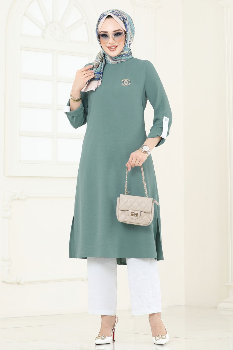 Offering both elegance and comfort, the Cuffed Button Aerobin Suit is a modest wear that can be comfortably worn in all seasons. It can be cleaned with a gentle wash at 30 degrees. Made from aerobin fabric, this set consists of a bicycle neck tunic and cuffed button trousers. The tunic is side-slit and unlined while the trousers have an elastic waist for comfortable wear. Suitable for both everyday use and special occasions, this suit adds a stylish look with its active cuff buttons.