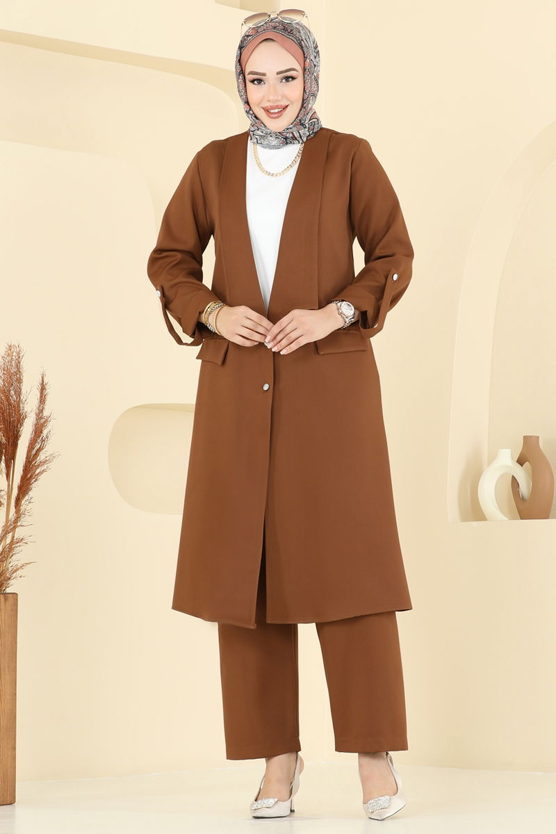 Product Feature : It is a new season hijab fashion product. The product has a Jacket collar. The product has half front buttons. Unlined. Pocket details are accessories. The waist of the trousers is elastic. There may be a tonal difference in the product due to concept photo shoots.