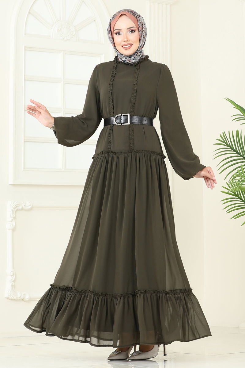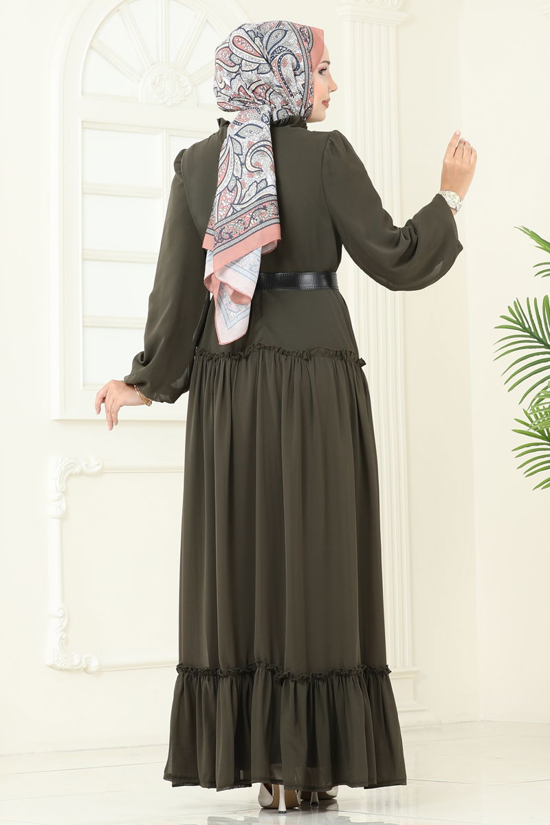Desenli Şifon Elbise 5307AL357-MS Haki