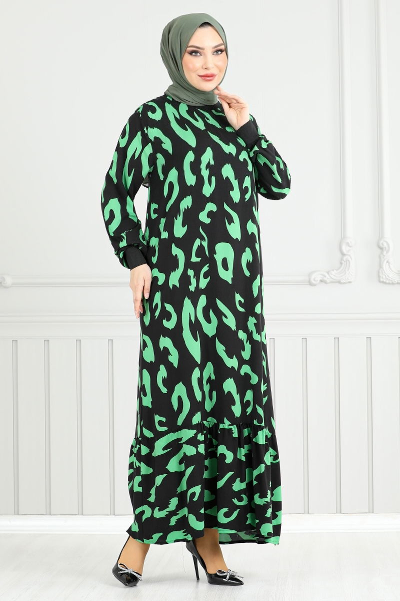 Desenli Viskon Elbise 820OZR1047-M Yeşil