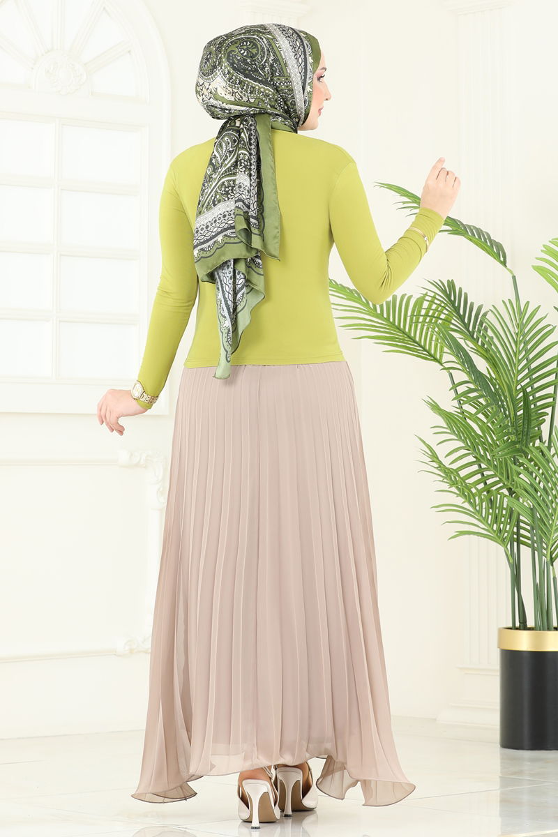 Drapeli Tesettür Bluz 4725AYD574-MS Yağ Yeşili