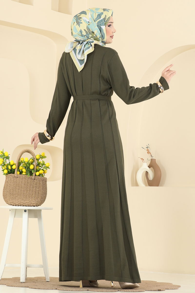 The Beli Bağcık Detailed Dress is an essential piece for the autumn and winter seasons, featuring a triko fabric and a crew neck. This modest dress can be washed at 30 degrees on a delicate cycle, offering both elegance and comfort. With its tie-waist design, it adapts to various body sizes. Its unlined structure provides light and comfortable wear. Designed in a standard size, this dress fits sizes 36 to 42.
