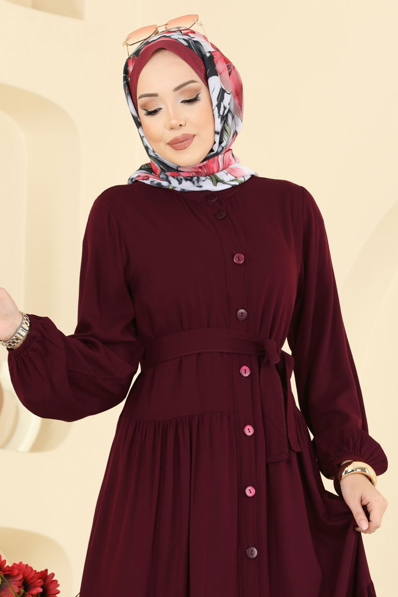 Chic and comfortable, the Front Buttoned Viscose Dress is a modest attire suitable for all seasons. Crafted from viscose fabric, this dress features a semi stand-up collar that adds a modern touch. The front buttons not only enhance its elegance but also ensure ease of wear. A belt detail accentuates your silhouette, while the dress’s light and airy structure without lining offers comfort. Recommended to be hand-washed, this piece comes with an included belt which can be styled optionally, and elastic cuffs complete the stylish look.