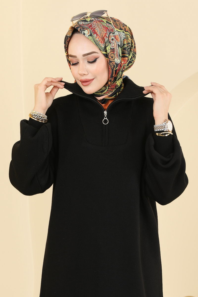 The Half-Zip Knit Dress is a comfortable, modest option perfect for fall and winter, keeping you warm in style. It can be machine washed at 30 degrees on a gentle cycle, offering easy maintenance. With its high neck and unlined design, it delivers impeccable elegance. Available in standard sizes.