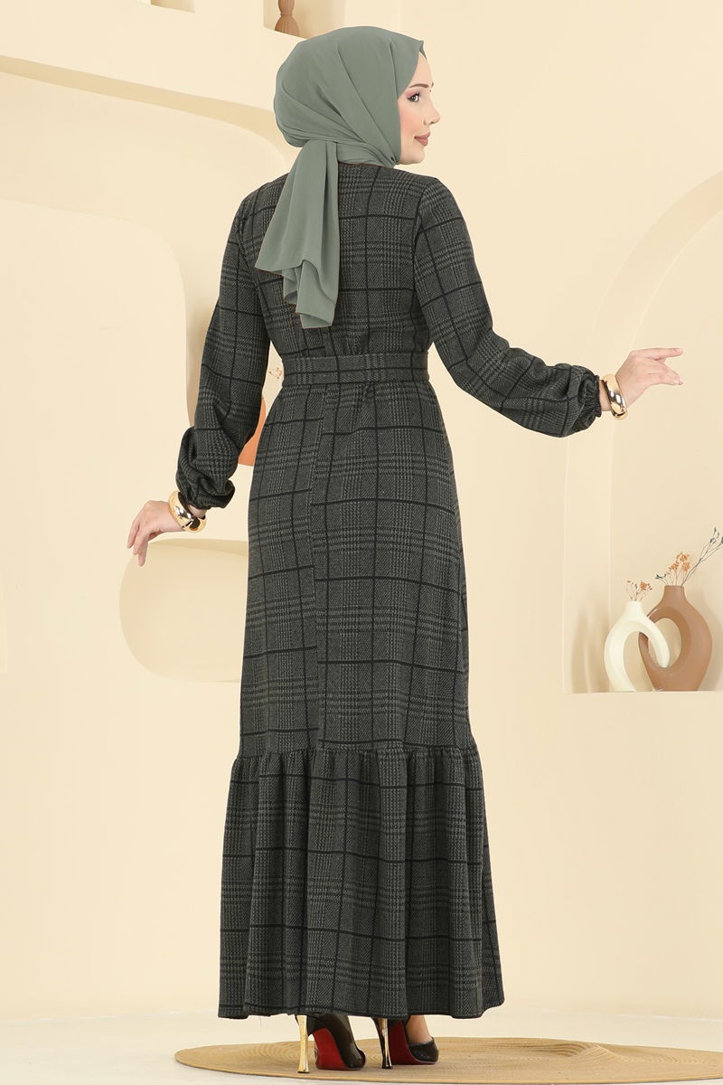 Plaid Pattern Winter Dress The is a hijab model product. It can be used in Autumn and Winter seasons. It should be washed at 30 degrees without squeezing. It is made of first class Plaid fabric. The product has a Bicycle collar. It has no lining. (The product on the model is size 38.) The inner dress is worn from the head. Both ends of the belt are sewn to prevent waving, and the middle part is left empty (seamless). The belt is included with the product and may be optionally used. The cuffs are elasticized.