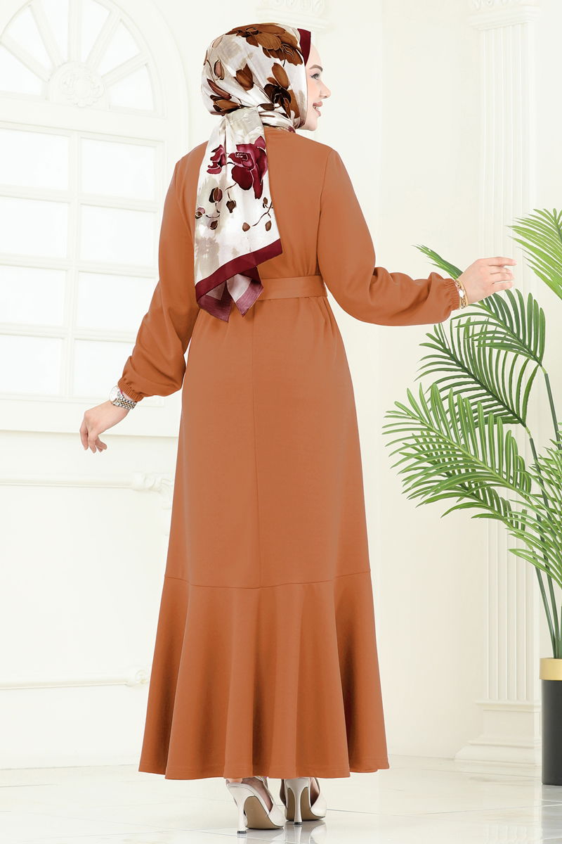 The Belted Mira Dress is a stylish option suitable for all seasons, designed specifically for modest wear. Made from Mira fabric, this dress can be gently washed at 30 degrees. It features a crew neck and elasticated cuffs for a contemporary look, while its unlined design ensures lightweight and comfortable wear. The belt is designed with stitched ends to prevent waving and can be optionally removed. The product is standard size 38, making it perfect for maintaining elegance in any setting.