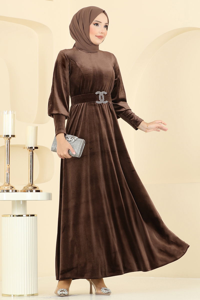 Upgrade your winter wardrobe with this stylish and modern Stone Belted Velvet Dress. Ideal for autumn and winter use, this dress is made from delicate velvet fabric. It features a stand-up collar and a back zipper detail, offering a unique sophistication with its lining-free structure and integrated stone belt. The belt is fixed to prevent waving and can be optionally removed. Washable at 30 degrees, this dress promises practical and elegant use.