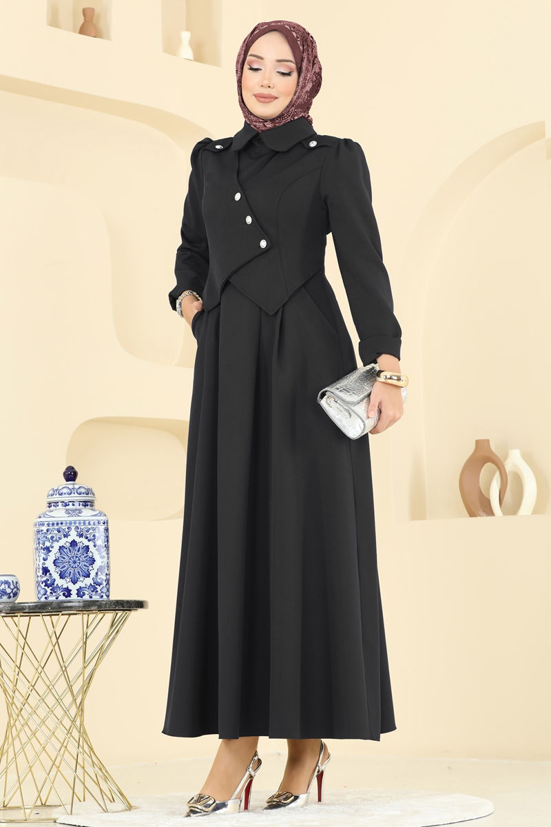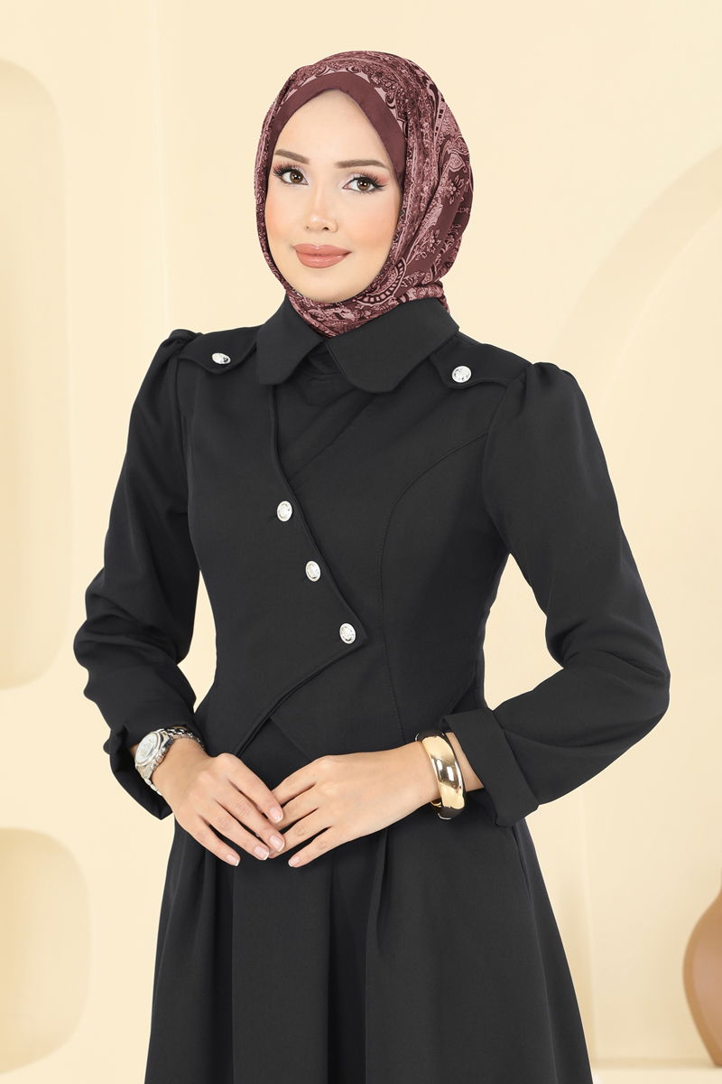 Product Feature : It is a new season hijab fashion product. Bolero detail is sewn onto the product. The product has a Bebe collar. Unlined. The product has a zipper at the from the back part. Buttons are active. The product has a pocket. There may be a tonal difference in the product due to concept photo shoots.