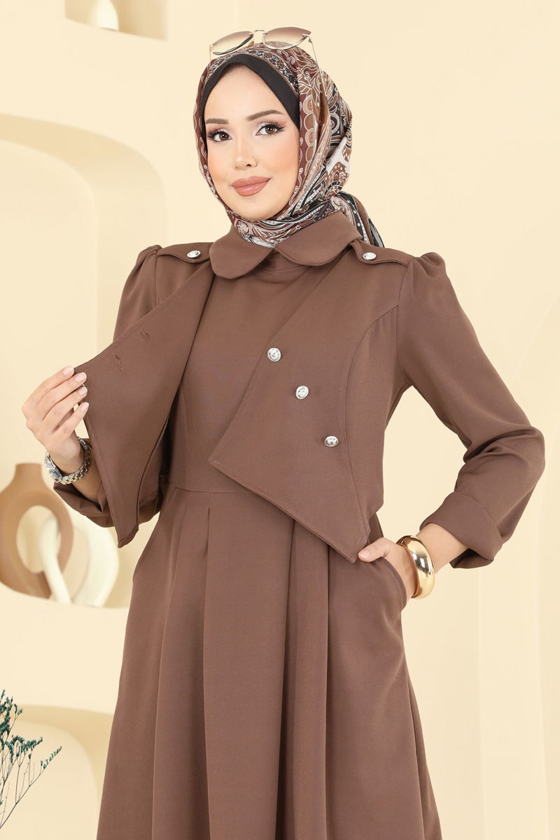 Product Feature : It is a new season hijab fashion product. Bolero detail is sewn onto the product. The product has a Bebe collar. Unlined. The product has a zipper at the from the back part. Buttons are active. The product has a pocket. There may be a tonal difference in the product due to concept photo shoots.
