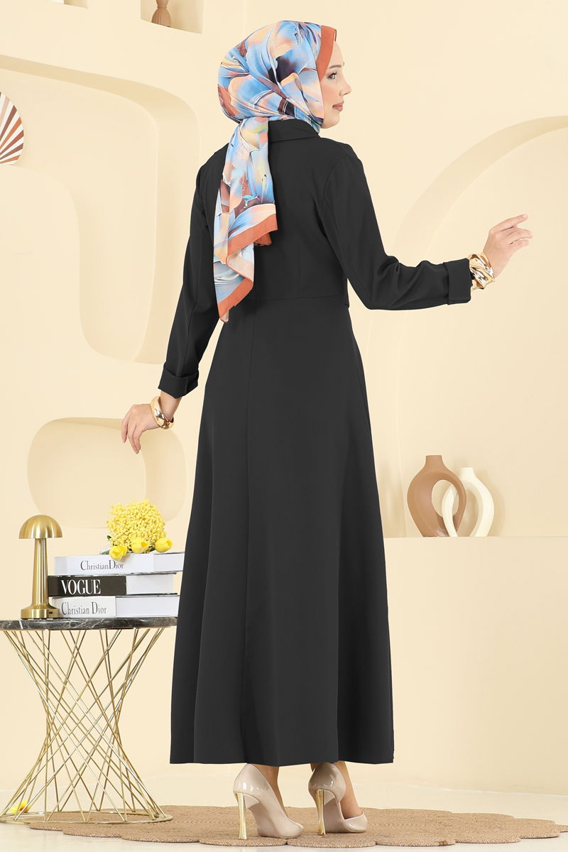 With its modern and stylish design, the Buttoned Dabil Dress brings a new breath to hijab fashion. This dress, which can be comfortably worn in all four seasons, can be cleaned at 30 degrees with delicate wash. Its crossover neckline design and unlined structure prioritize comfort, while the side zipper facilitates easy dressing. The quality of the woven Dabil fabric and the chic detailing of the buttons maintain your elegance in every setting.