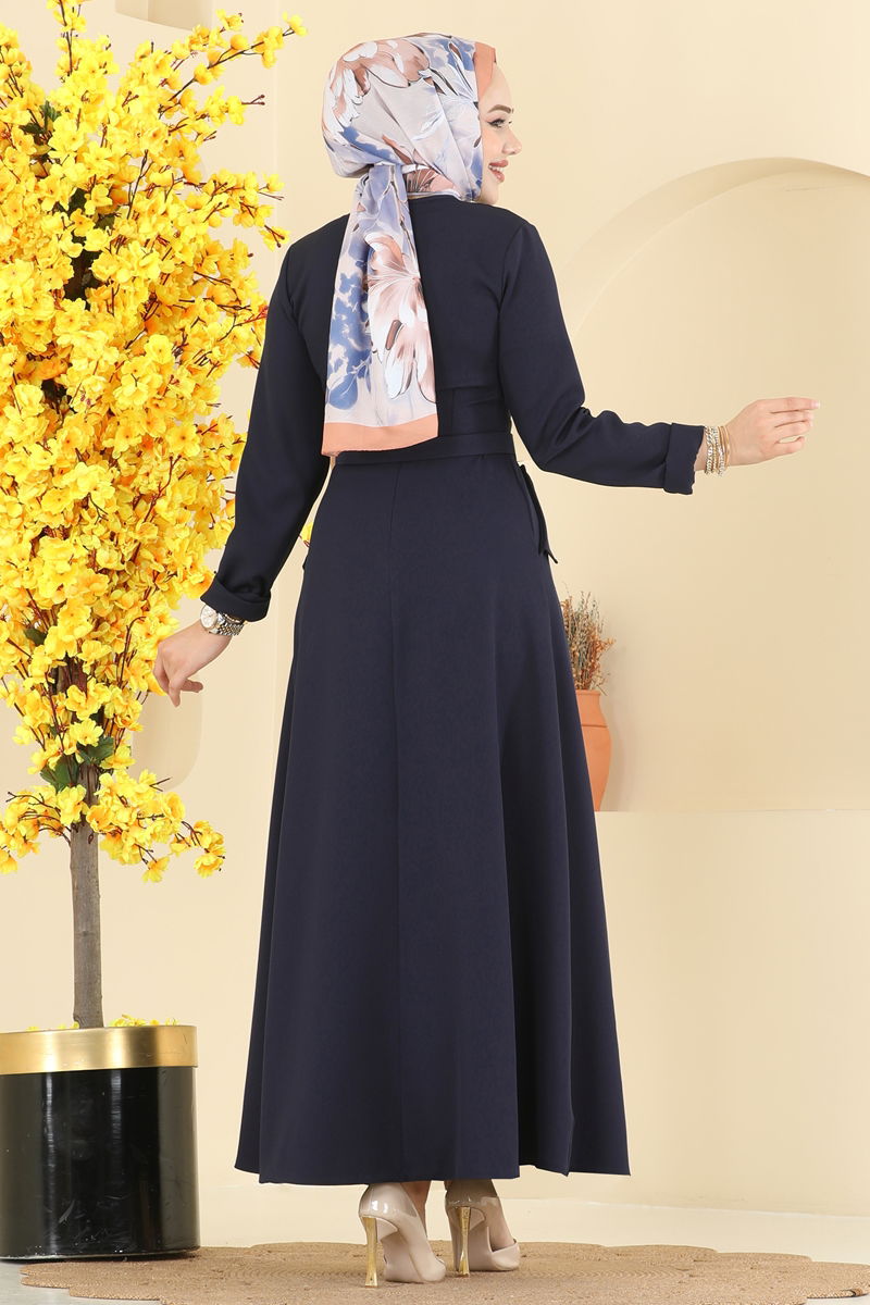 The Coated Belted Dabıl Dress is a product of modest fashion that brings elegance and comfort together. Made from woven Dabıl fabric, this dress can be washed at 30 degrees on a gentle cycle. Its mandarin collar and unlined design add an element of sophistication, while the zipper at the back ensures ease of use. The waist is beautifully seamed, and the belt is specially designed to prevent waviness. The belt is optionally usable and comes with the dress. Additionally, the dress features a pocket for practical use.