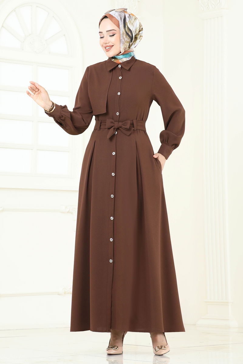 Product Feature : It is a new season hijab fashion product. The product has a Shirt collar. The product has From the front buttons. Unlined. The product has a stitched waistband. Belt included, optional not available. Pocket available. Cuff buttons are active. There may be a tonal difference in the product due to concept photo shoots.