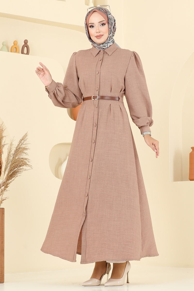 Product Feature : It is a new season hijab fashion product. The product has a Shirt collar. The product has From the front buttons. Unlined. Belt included, optional not available. Cuff buttons are active. There may be a tonal difference in the product due to concept photo shoots.