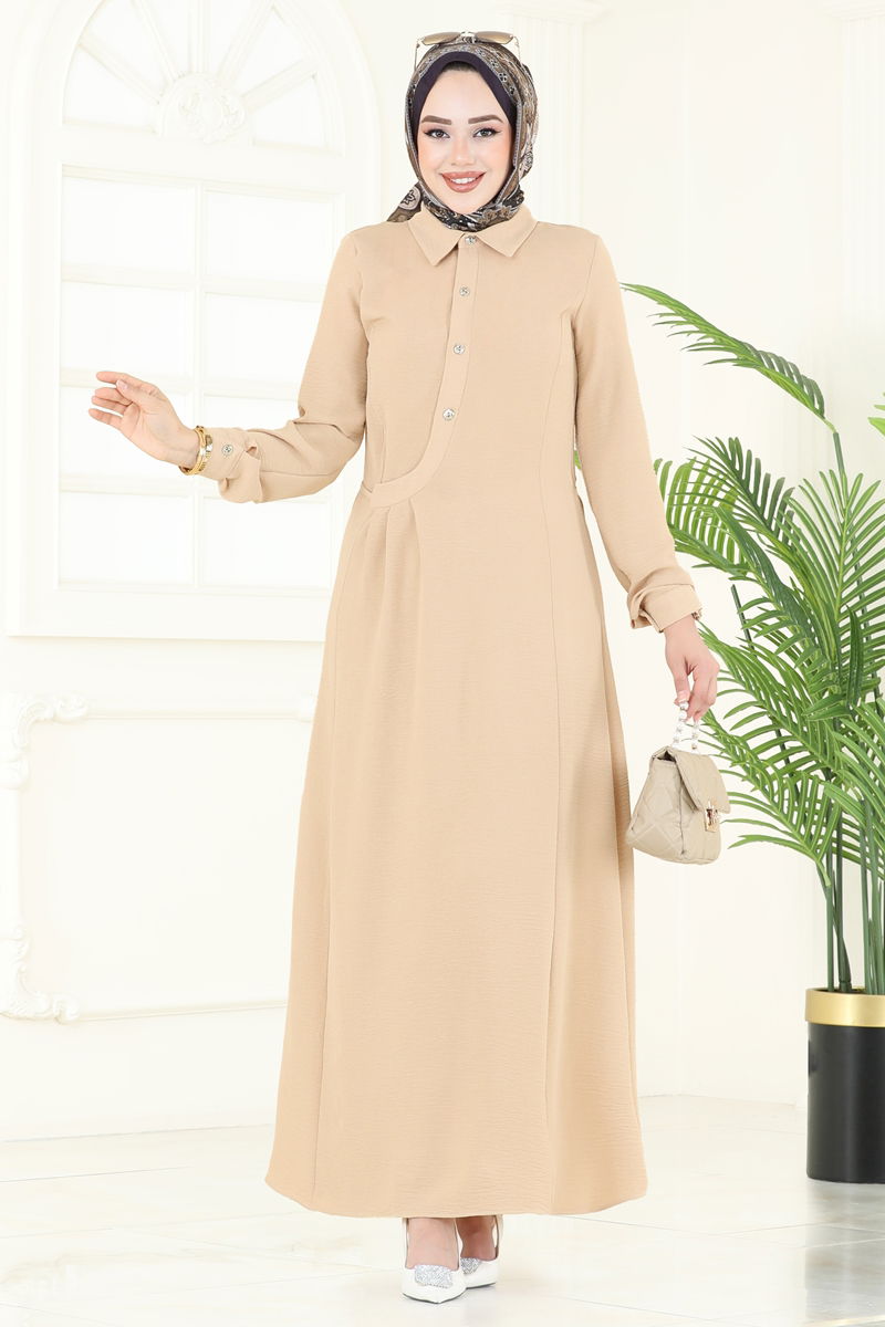 The Half-Buttoned Dress combines elegance and comfort in a single design. Ideal for those who prefer modest wear, this dress can be comfortably worn in all seasons. Easily washable at 30 degrees on a gentle cycle, the dress promises durability with its aerobin fabric. Offering a stylish look with its shirt collar and side-tie belt, while the cuff buttons add a functional detail. The dress ensures a light and comfortable wear with its unlined structure. Maintain your elegance in any setting.