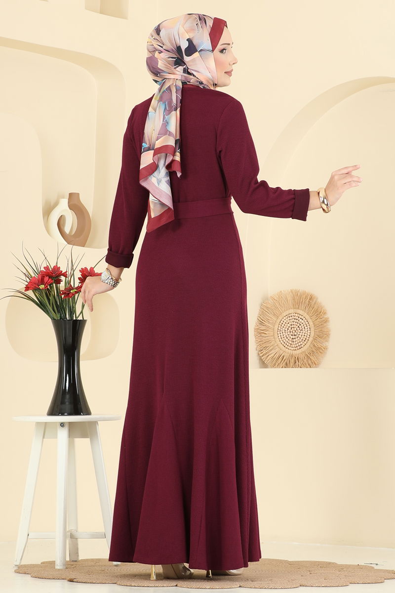 The Twisted Buttoned Dress is a modest fashion product suitable for all seasons. It can be washed at 30 degrees with delicate care, made from twisted fabric, and features a crew neck. This front half-buttoned dress also has ruffle details at the hem and is unlined. It comes with an elastic waist and a belt, which is stitched at both ends to prevent waving, although the use of the belt is optional.